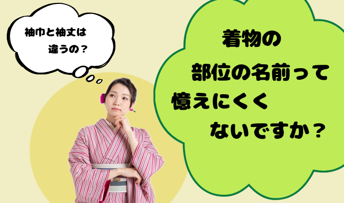 着物の部位を指す言葉は、洋服には使わない言葉が多くて「袖巾と袖丈の違いがわからない」とか「前巾がどこからどこまでかわからない」というお声を伺ったこともございます。各部位の名前がわからなくても、お着物のご着用に支障があるわけではないのです... -