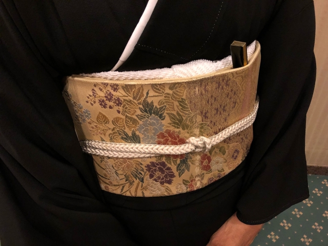 黒留袖の帯に挿す金銀の小ぶりの扇子を末広(すえひろ)と呼びます。