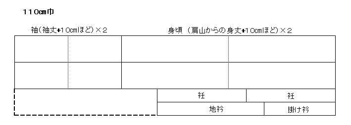 下の図のように、身頃分と袖分の長さがあれば足ります。