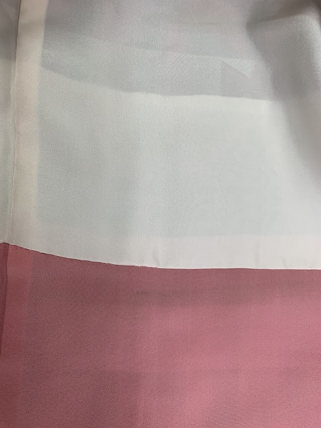 こちらのお着物は、穴が開いてしまった部分と変色した部分を裁断いたしまして